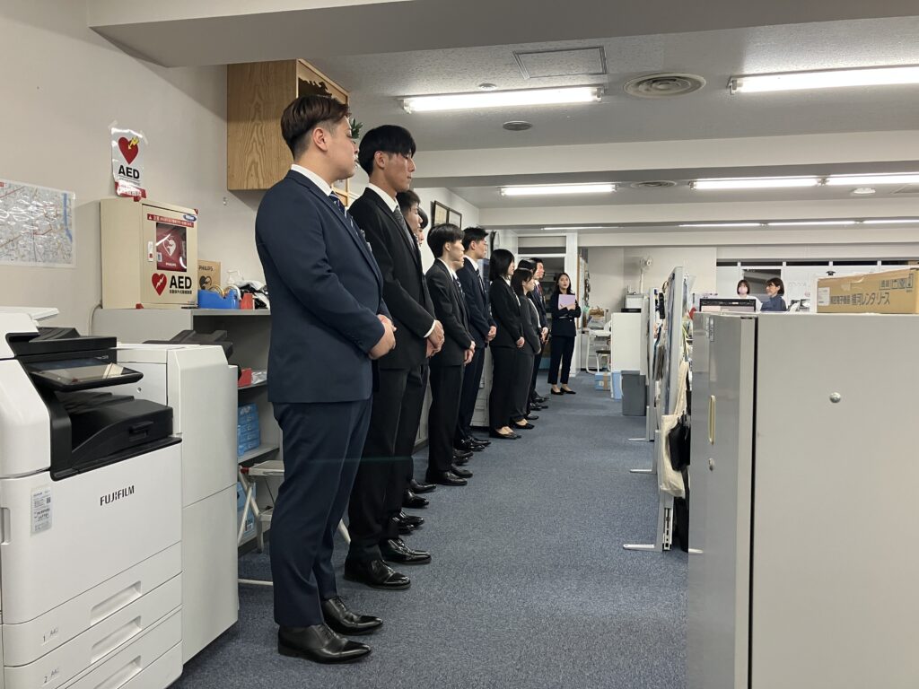 朝、少し緊張した面持ちで出社した新入社員たち。